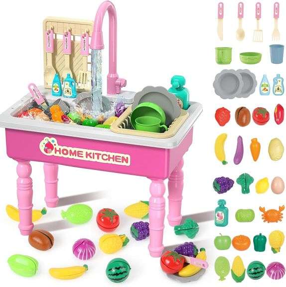 e Playing Game Pretend Food,44 PCS Kitchen Accessories Set for 3 4 5 Years Old Girls Boys Classic Edition Item Condition : Open Box - Not Tested UPC: B0BRD15THV Water Circluation & Stoage The water sink of this kids kitchen adopts a water circulation system to save water.