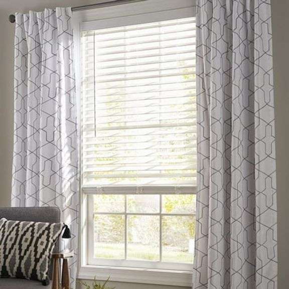 Size: 23W x 48L Item Notes: 2 boxes different lengths $26 For Inside Mount Installations (Inside the window frame) Order your exact window size. A 0.5-inch deduction will be taken on the width for a precise fit inside the window frame. For Outside Mount Installations (Outside the window frame) Recommended to add 4 Inches to the width (2 on both sides) for optimal light control and privacy. Actual blind width is 0.5-inch narrower than the ordered size to allow for mounting clearance Cord-free design is safer for homes with children and pets 2-inch slats have a woodgrain texture for the look of real wood Room darkening slats helps block outside light Blinds easily lift and lower using the bottom rail Wand tilt to control the amount of light that enters the room Easy maintenance simply wipe with a soft cloth Installation hardware and instructions included Can mounted inside or outside window frame Tools required for installation: measuring tape, pencil, level, screwdriver and/or power drill Color: White Available in multiple sizes.
