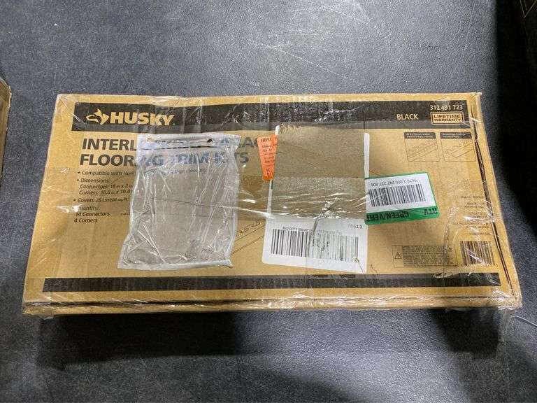 LOT R83 - Compatible with Husky Interlocking Garage Flooring Gray Dimensions: Connectors 18in x 2in / Corners 10.8 in x 10.8 in Covers 26 Linear Sq Ft 14 connectors & 4 corners