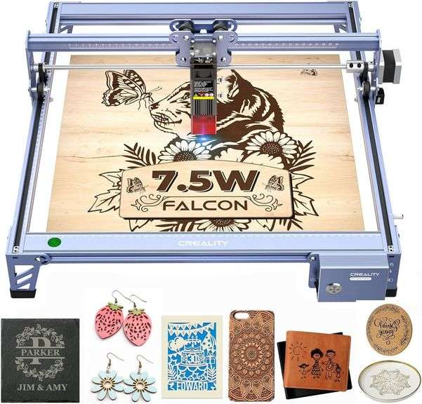 Laser Output Power Level:7500mW, The Laser Class:4 Ultra-Fine Engraving & Stronger Cutting The Creality CR-Laser Falcon is made with 6-lens laser convergence technology, producing a true Laser Output Power 7500mW and compressing the focal spot to only 0.05mm. It delivers high-quality laser work with impeccable details and can cut through 4mm wood board in one pass and up to 5mm wood board. Larger Workspace & More Efficient With a 15.7" x 16.3" workspace and a maximum engraving speed of 10000mm/min, our laser engraver (the machine power is 72w) meets your current and future needs if you intend to engrave on larger products or require quicker processing time, making your work more productive. Beginner Friendly The laser engraver can be easily assembled in 15-20 minutes. It comes with a built-in leveler and focus strip to help the user calibrate the machine quickly. What's more, it features One-button Control for offline creation, allowing you to make your idea real anywhere. Multiple Safety Protection The laser cutter is equipped with anti-UV filter acrylic and glasses to protect your eyes and surroundings from laser irritation. It is programmed with an Active Stop Function that will automatically stop the machine and send an alert when it detects tilt, flip, or drop Extensive Compatibility The Creality CR Laser Falcon 7.5W laser engraving machine is compatible with Laser GRBL/LightBurn software and supports both Windows and macOS operating systems. And we offer 24 hour professional customer service and life-time technical support..