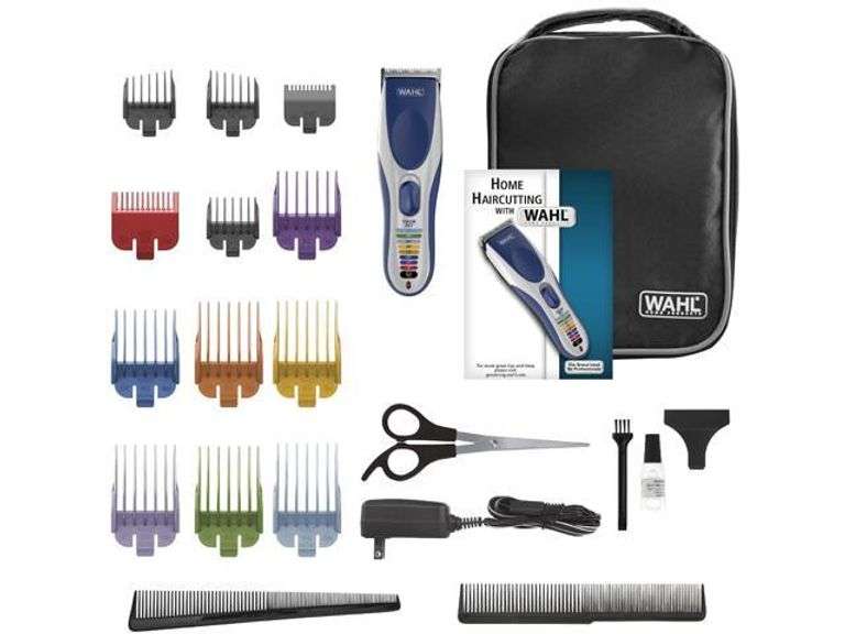 $56 Wahl Color Pro CORDLESS Clipper kit features color-coded combs that make it quick and easy to find just the right comb size. The convenient color code guide on the clipper helps make it easy to identify just the right size and comb color in seconds. The clipper powerful long-lasting rechargeable battery with a run time of up to 60 minutes. Clipper can be used with or without a cord for ultimate convenience. Includes a self-sharpening stainless steel blade with outstanding cutting performance. The stainless steel blade can also easily be removed blade for easy cleaning. The Color Pro CORDLESS color-coded haircutting kit includes the clipper with blade guard a complete set of color-coded attachment guards haircutting accessories and full-color instructions with step-by-step guidance for an easy goof-proof at-home haircut. A premium soft storage case is also included for added convenience. Worldwide voltage (110 - 240V) for universal use at home or internationally. Save a trip to the barber salon or hairs.