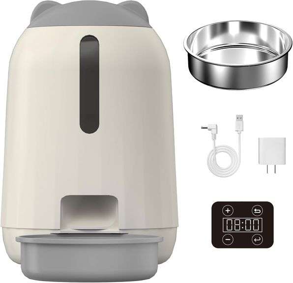 LOT N-876-G - PAPIFEED Smart Automatic Cat Feeders, Dual Power Supply Cat Food Distributor, 3L Automatic Cat Feeder (Grey-Button Version)