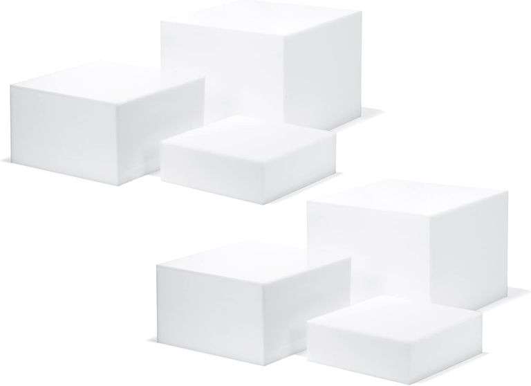 LOT F-780-G - Red Co. 2 Sets of 3 Glossy White Acrylic Cube Display Nesting Risers with Hollow Bottoms