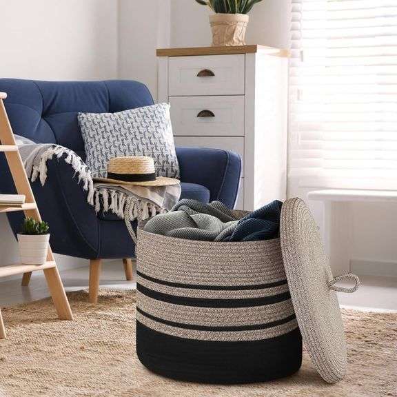 LOT E-31 - Large Basket with lid measuring 21 1/2" across.