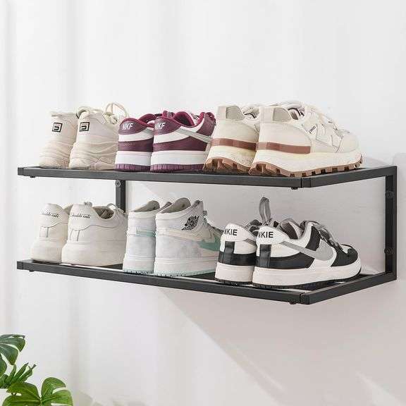 LOT E-57 - CULTURE LABELS Floating Shoe Rack - Modern 2-Tier Shoe Hanger Ideal for Entryway, Hallway, and Bedroom - Floating Shoe Display, Fits Various Shoe Size