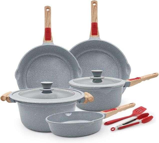 LOT G-10 - Ceramic Pots and Pans Set Nonstick, 9-Pcs Cast Aluminum Kitchen Cookware Set with Lid/Frying Pans & Saucepans with Detachable Handle, PTFE & PFOA Free
