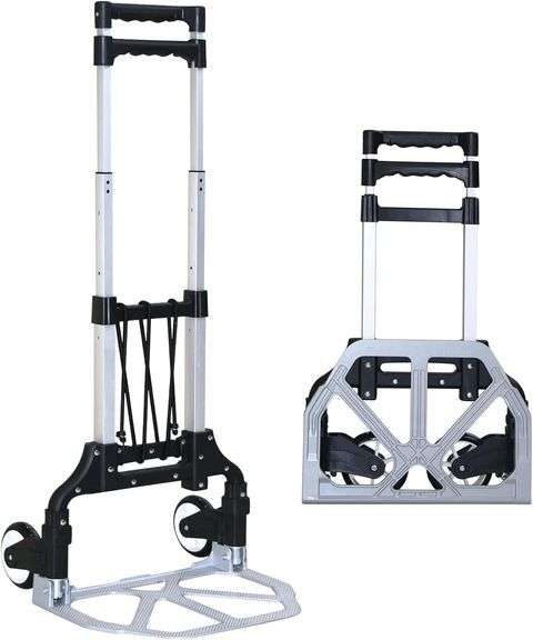 LOT C-140 - Folding Hand Truck Dolly Cart Aluminum Portable Hand Cart for Daily handling Work 180lbs, with Silent Wheel Telescoping Handle Black Bungee Cord, Can