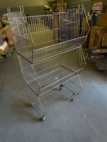 LOT 8292jl - 3 Tier Stackable Wire Bins With Casters