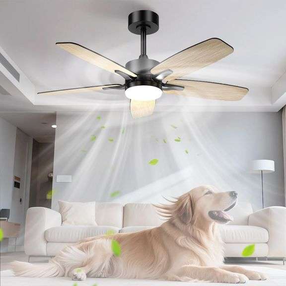 LOT B-45 - Hisummer 42 Inch Ceiling Fan with Lights and Remote for Bedroom/Living Room, Black & Brown 2-Color Blade, 3 CCT, 6 Speed, Quiet & Dimmable, Ventilateu