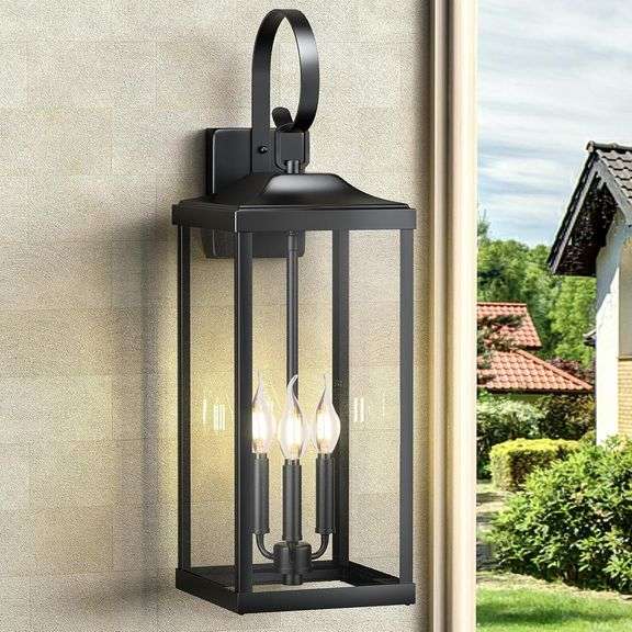 LOT B-48 - Yolsunes 24" Extra Large Outdoor Wall Light for House, Black 3-Light Waterproof Exterior Porch Lamp Wall Mount, Modern Outside Wall Sconce Coach Light