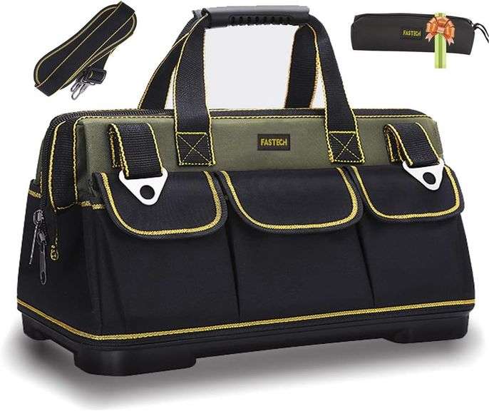 LOT E-815-D - FASTECH 22-inch Wide Mouth Tool Bag with Water Proof Molded Base Wide Mouth Tool Tote Bag,Waterproof Tool Organizer Bag for Men with Adjustable Should