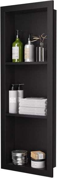 LOT E-805-D - POOAMY Stainless Steel Shower Niche 12" x 36", 3-Layer Wall Mounted No Tile Needed, Recessed Shower Niche with Hollow Partition, Shower Niches Shelf f