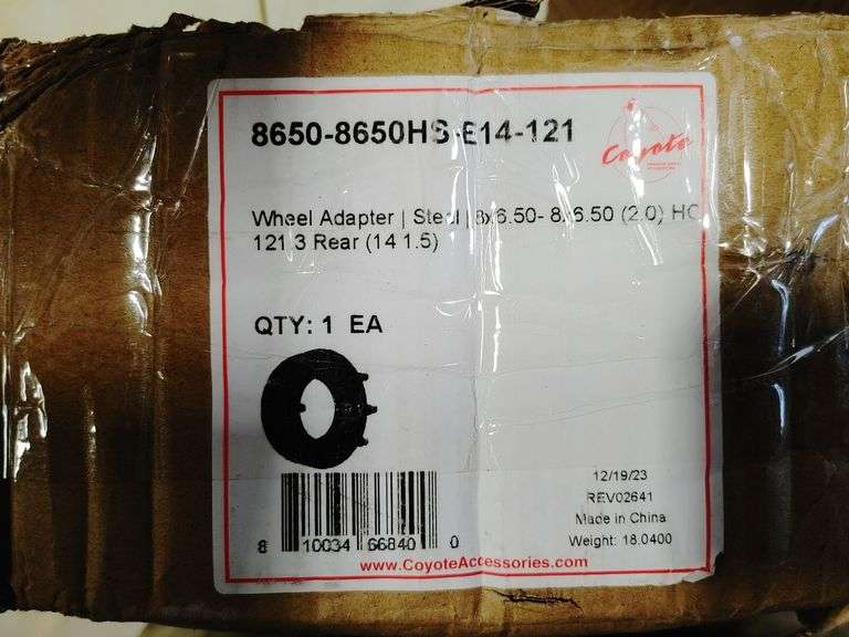 LOT E-783-D - 1 Pc Coyote Wheel Spacers 8 on 6.50 8x6.50 2.00" Thick 8650-8650HS-E14-121 (Y2CE