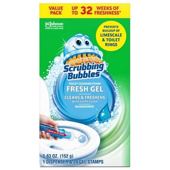 LOT O-84-D - (2) Scrubbing Bubbles Rainshower Gel Toilet Cleaning Stamp, Rain shower, Dispenser with 4 Refills