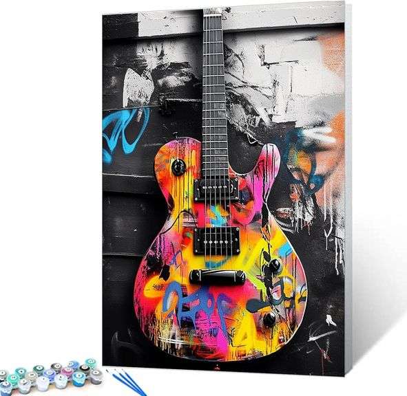 LOT O-78-D - (2) Graffiti Style DIY Oil Paint by Numbers for Adults Beginners Without Frame Cool Guitar Painting by Number on Canvas with Brushes and Acrylic Pigme