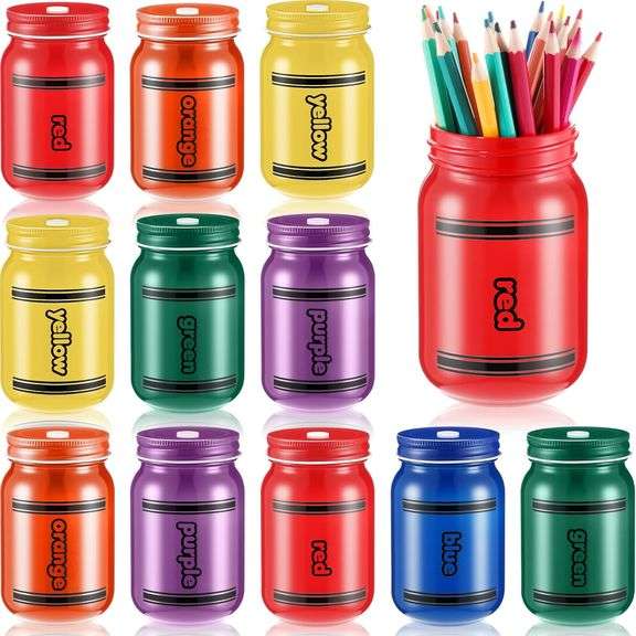 LOT O-21-D - Mimorou 12 Pcs Multicolor Painted Mason Jar with Lid Tissue Can Pencil Holder Glass Mason Jar Back to School Thank You Teacher Gifts for Teacher Schoo