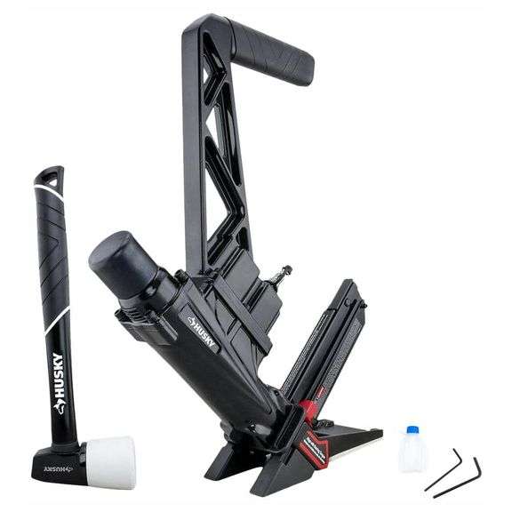 LOT E-856-D - Pneumatic 3-in-1 15.5-Gauge and 16-Gauge 2 in. Flooring Nailer and Stapler with Quick Jam Release