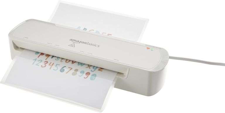 LOT O-152-D - Amazon Basics 9 inch Thermal Laminator Machine for Documents and Photos, Easy to Use for Home Office or School, White